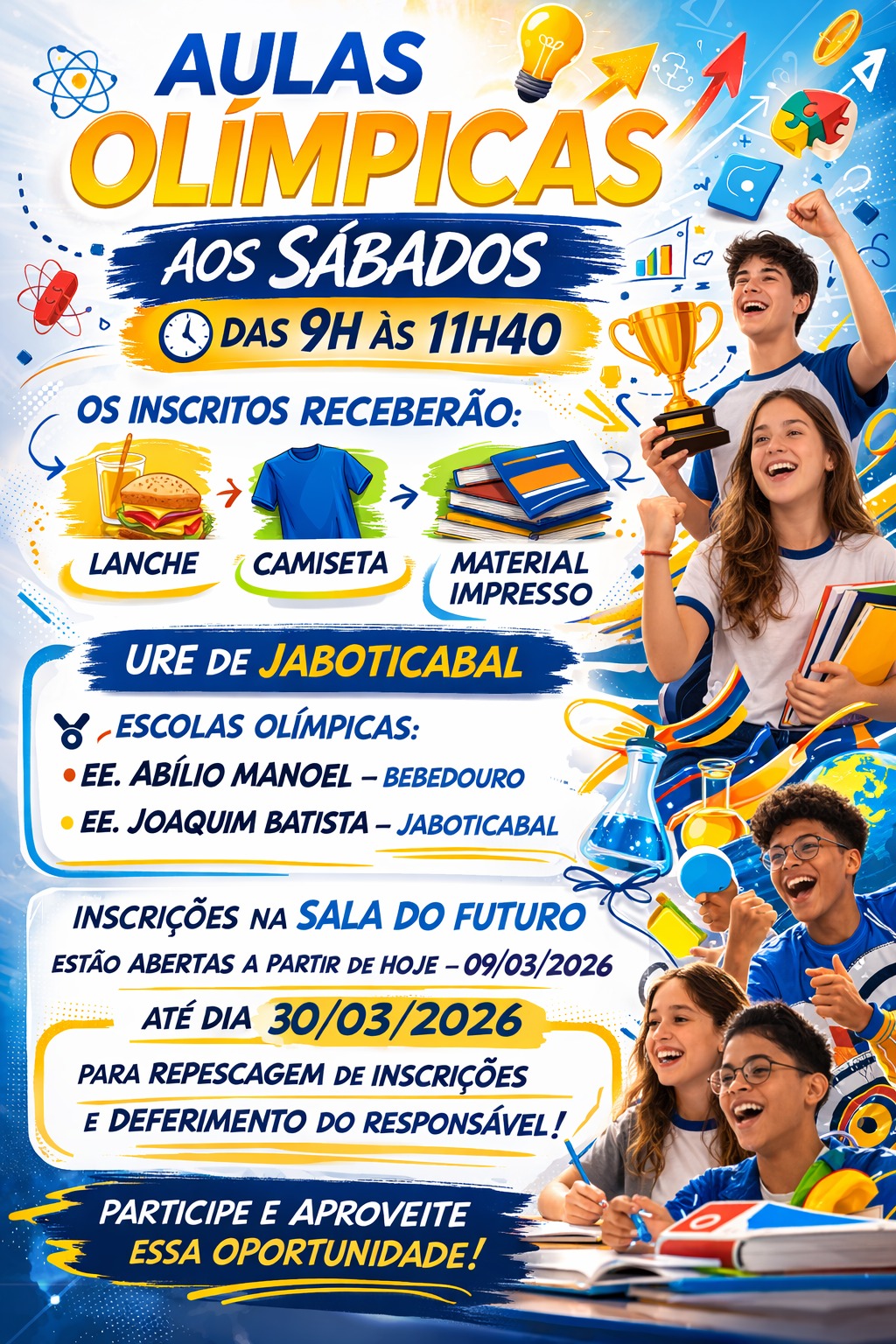 Aulas Olímpicas aos Sábados 11-03-2611 de março de 2026 LEIA TAMBÉM Aulas Olímpicas aos Sábados CONVOCAÇÃO PARA ENTREVISTA AOS DOCENTES INSCRITOS PARA AULAS OLÍMPICAS
