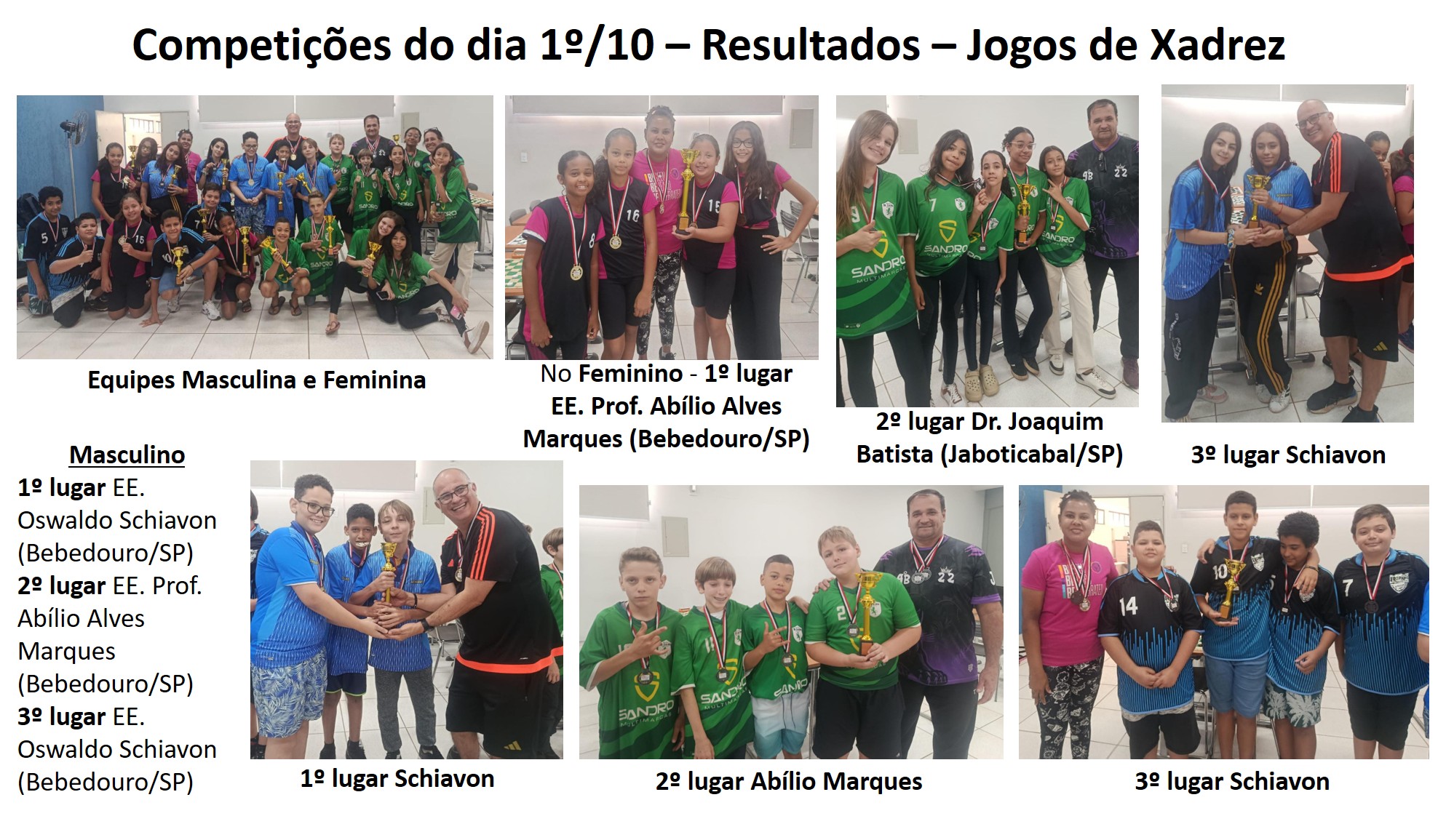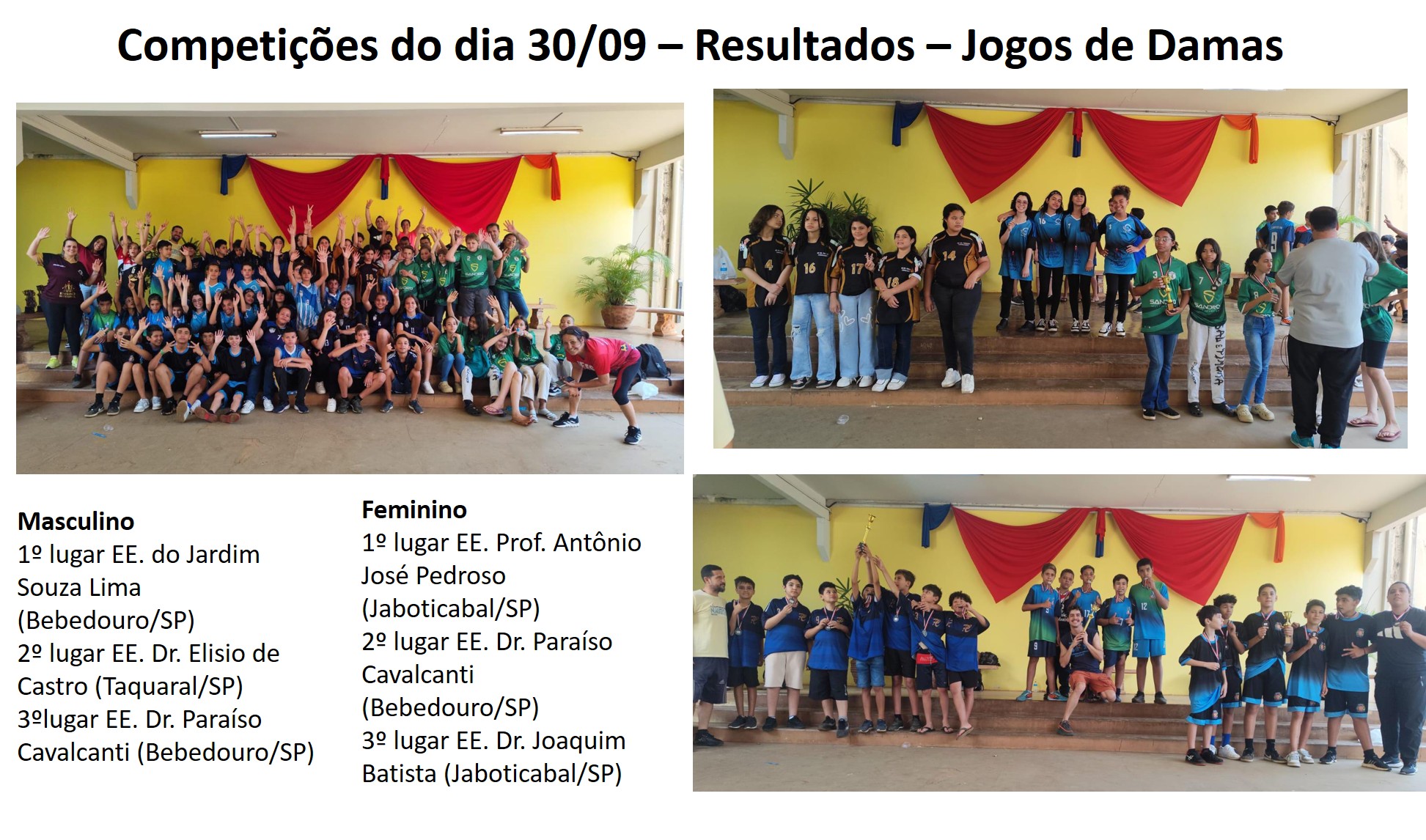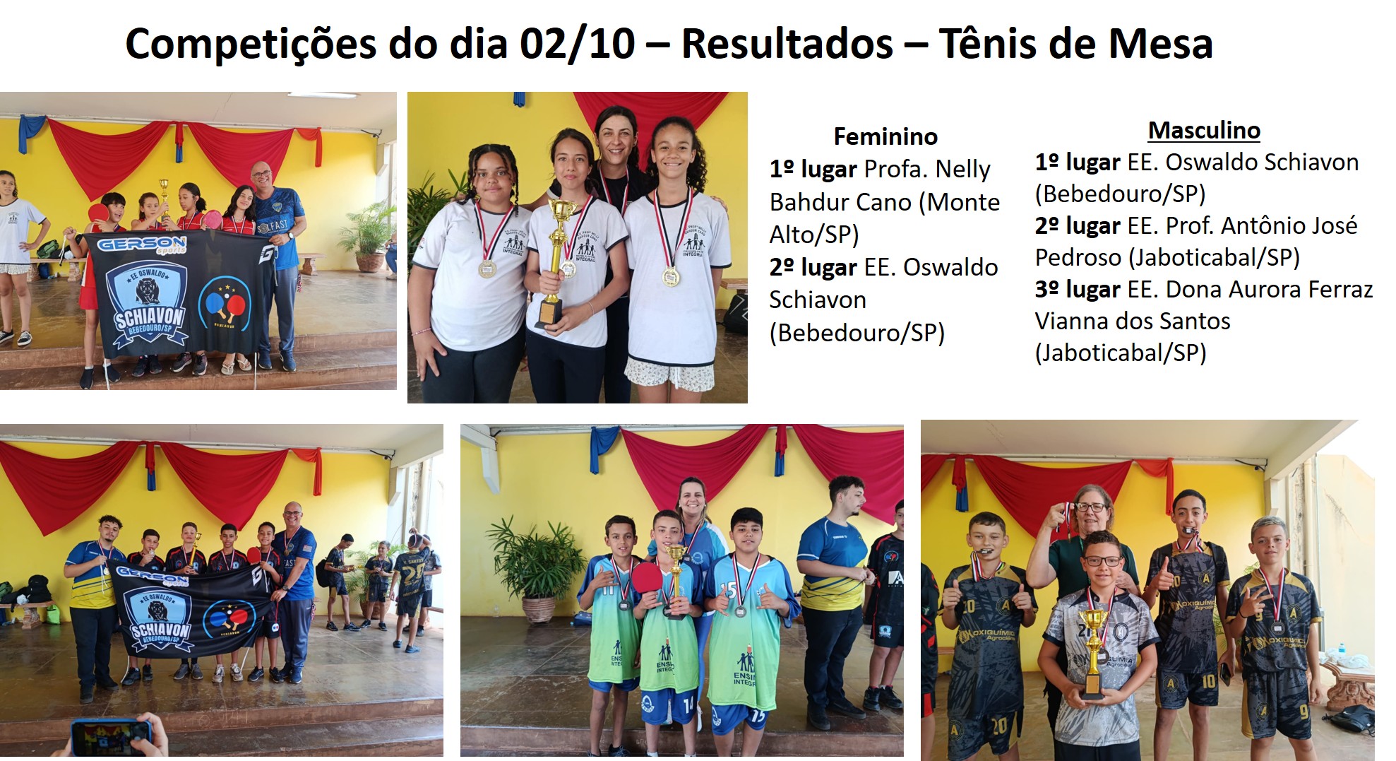 As finais do JEESP tiveram início no dia 30/09, com turmas de Damas, seguindo em 01/10 com o Xadrez e no dia 02/10, com o Tênis de Mesa, no anexo da URE Dr. Joaquim Batista, em Jaboticabal, sob coordenação da PEC, professora Karina.