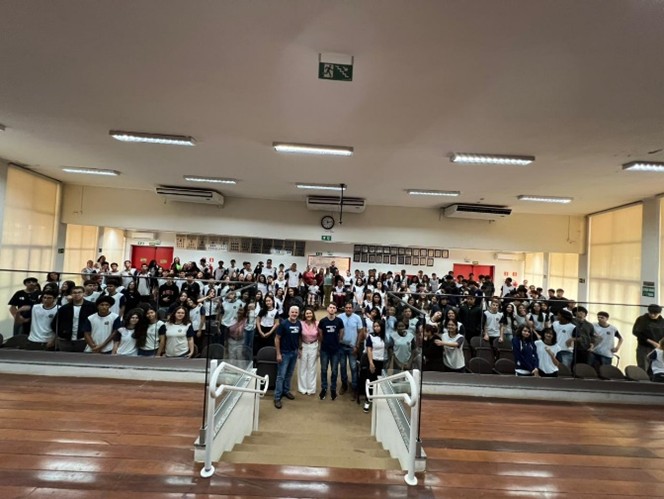A atividade contou com a presença da diretora da EMEF “Sérgio Rossetti”, professora Sirlene de Fátima Maduro, além de docentes e estudantes do 9º ano do Ensino Fundamental.