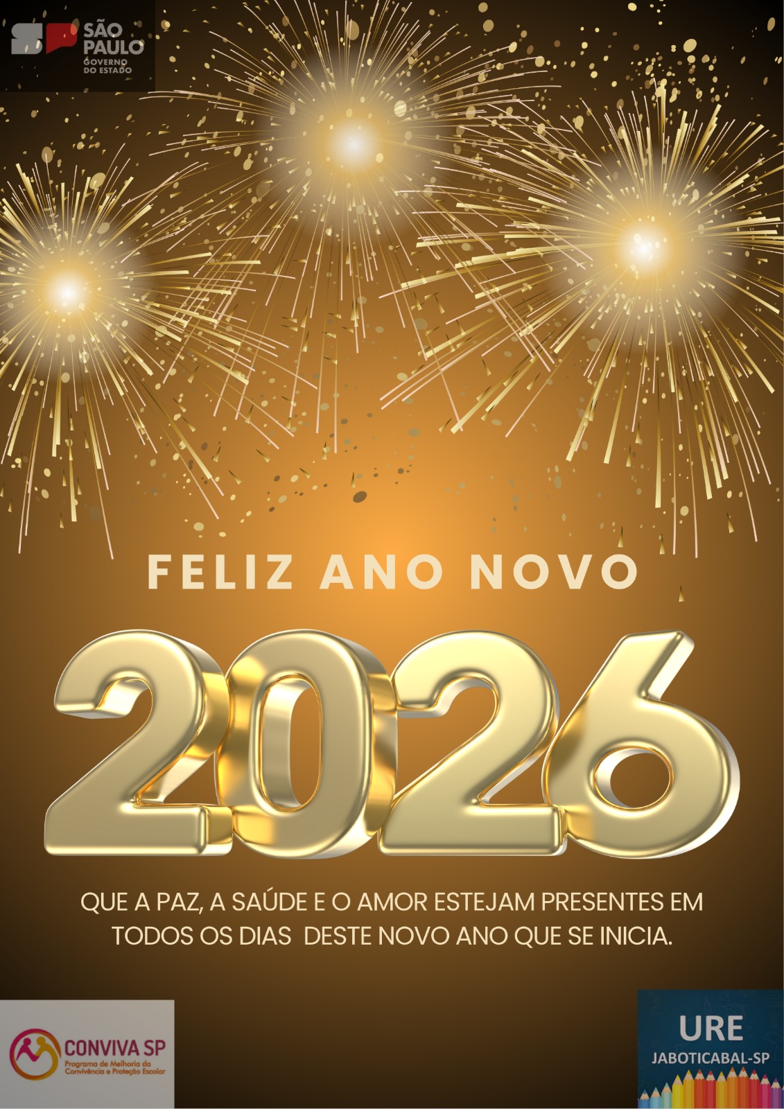 Feliz Ano Novo – 2026 – Conviva 31-12-252 de janeiro de 2026 LEIA TAMBÉM NOVA SESSÃO DE ATRIBUIÇÃO DE AULAS DOS ITINERÁRIOS DOS CURSOS PROFISSIONALIZANTES CONVOCAÇÃO PARA A 2ª SESSÃO DE ALOCAÇÃO DE DOCENTES NAS ESCOLAS DE PERÍODO INTEGRAL – exclusiva para docentes excedentes de 2025 CONVOCAÇÃO PARA ESCOLHA DE VAGA, CARÁTER TEMPORÁRIO, DE AGENTE DE ORGANIZAÇÃO ESCOLAR – 27/01/2026 Comunicado aos Pais