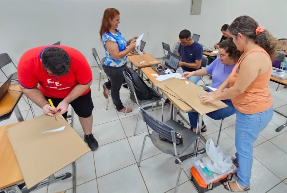 O encontro teve início com um momento de acolhimento reflexivo, no qual os professores foram convidados a analisar suas práticas docentes, valorizando experiências prévias e desafios enfrentados no cotidiano escolar. Na sequência, os participantes vivenciaram atividades práticas baseadas na metodologia maker e na aprendizagem “mão na massa”, passando por todas as etapas de construção, programação, testes e ajustes de um protótipo robótico funcional.