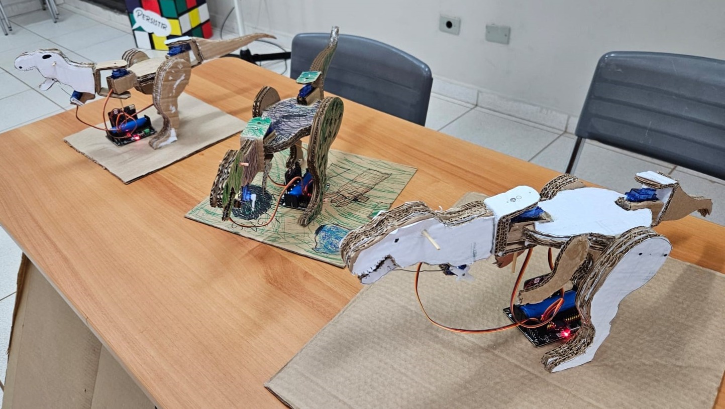 A formação teve como foco a integração de conceitos de programação, mecânica e pensamento computacional, por meio da construção de um protótipo animatrônico, articulando teoria e prática e promovendo metodologias ativas e aprendizagem significativa.