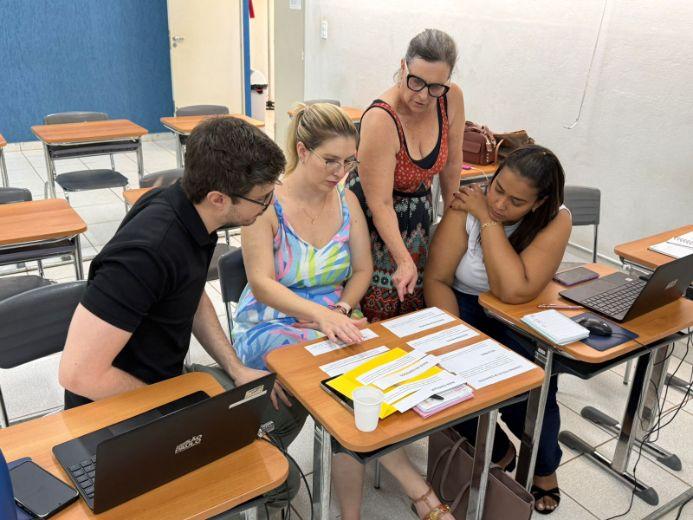 O encontro aconteceu no Anexo da URE – EE. Dr. Joaquim Batista, sob orientação da Coordenadora de Equipe Curricular, Sueli Amaral Ramos, Professora Especialista em Currículo, Maria Angélica dos Santos (Língua Portuguesa) e Professor Especialista em Currículo, Robson Jonas Mascarenhas Correia (Qualidade de Aula).