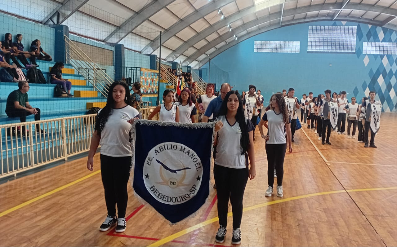 A Fanfarra da EE. Abílio Manoel (de Bebedouro), sob o comando do prof. Tamai Samuel de Antônio, recepcionou as 28 Delegações das Unidades Escolares da nossa URE que, juntos, acompanharam a execução do Hino Nacional e de Guariba. Em seguida, foi acesa a Tocha Olímpica, representando a esperança, dedicação e união de todos que acreditam no poder transformador do esporte.