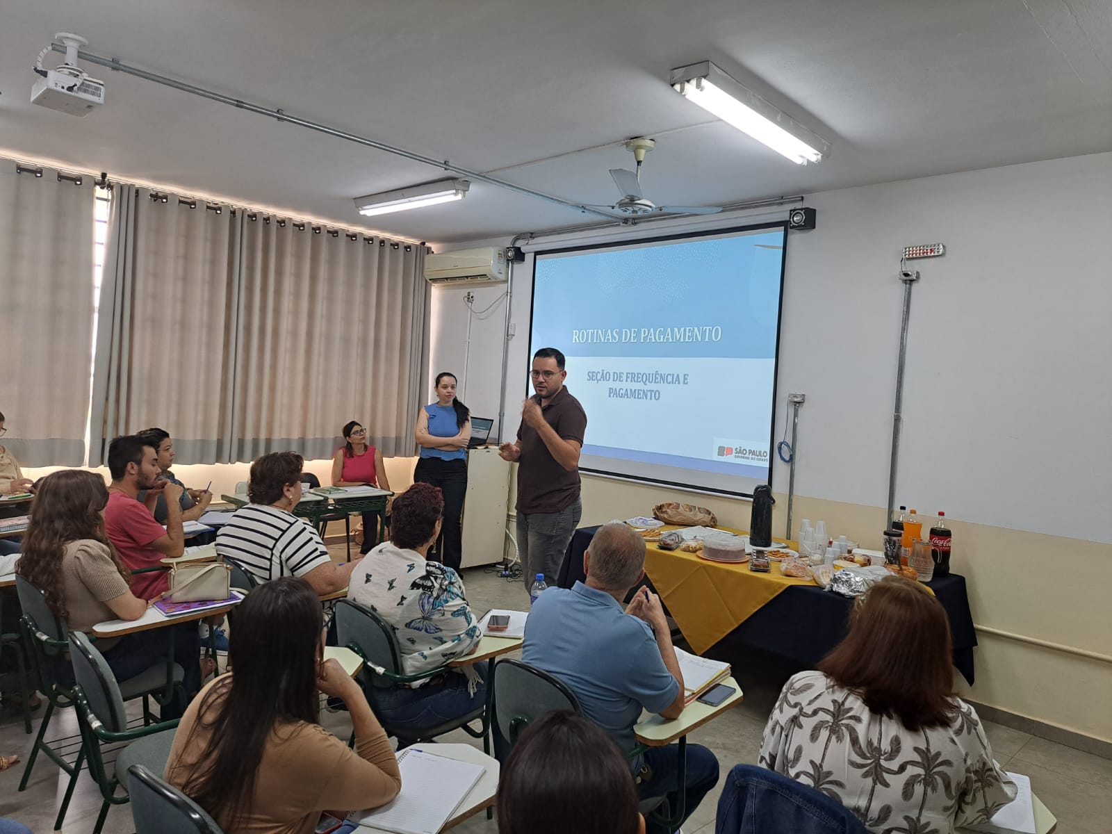 Nos últimos dias 13 e 14 de outubro, o Serviço de Pessoas, em conjunto com a Seção de Frequência e Pagamento e Seção de Administração de Pessoal, da Unidade Regional de Ensino de Jaboticabal, promoveram uma Orientação Técnica com objetivo de alinhar procedimentos e capacitar os funcionários responsáveis pela Secretaria Escolar das unidades de ensino.