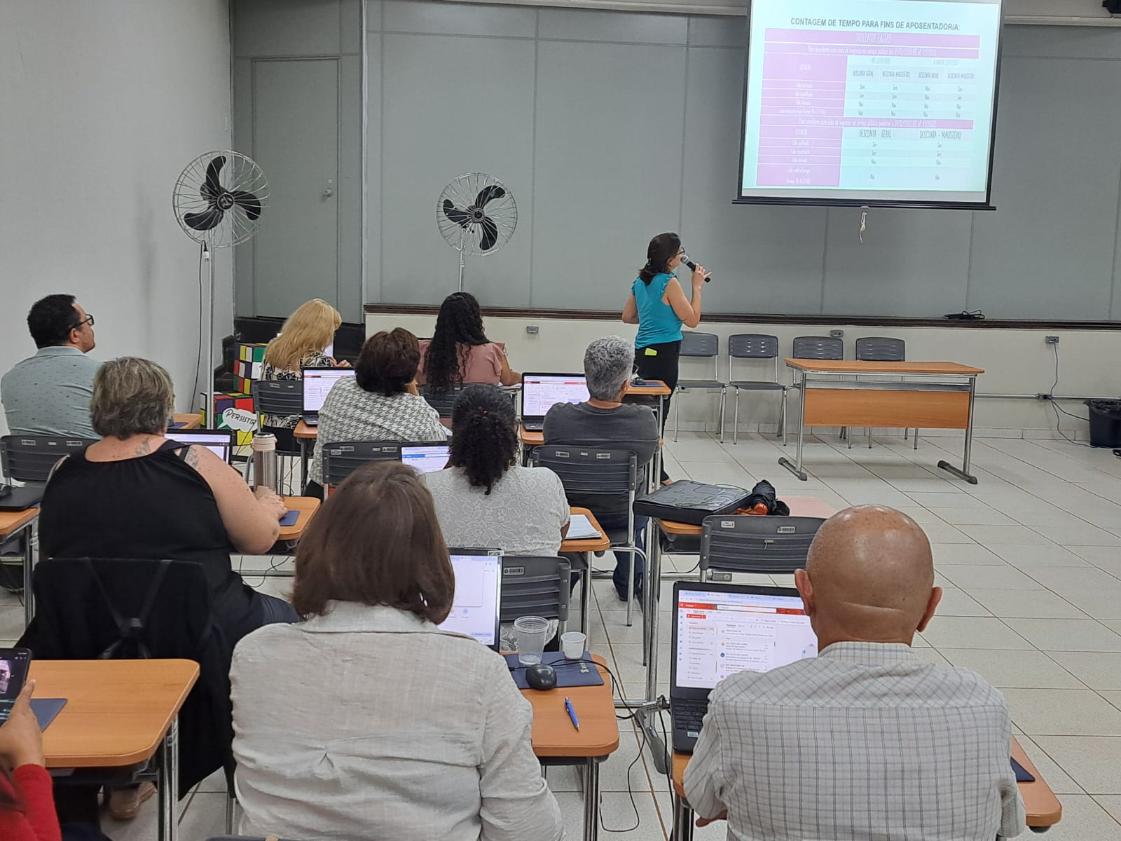 Na parte da tarde, a formação técnica foi sobre as principais mudanças nas regras de aposentadoria, nos termos da Lei Complementar 1.354/2020, um momento de aprendizagem da legislação com aplicação na prática, através de simulações de aposentadoria.