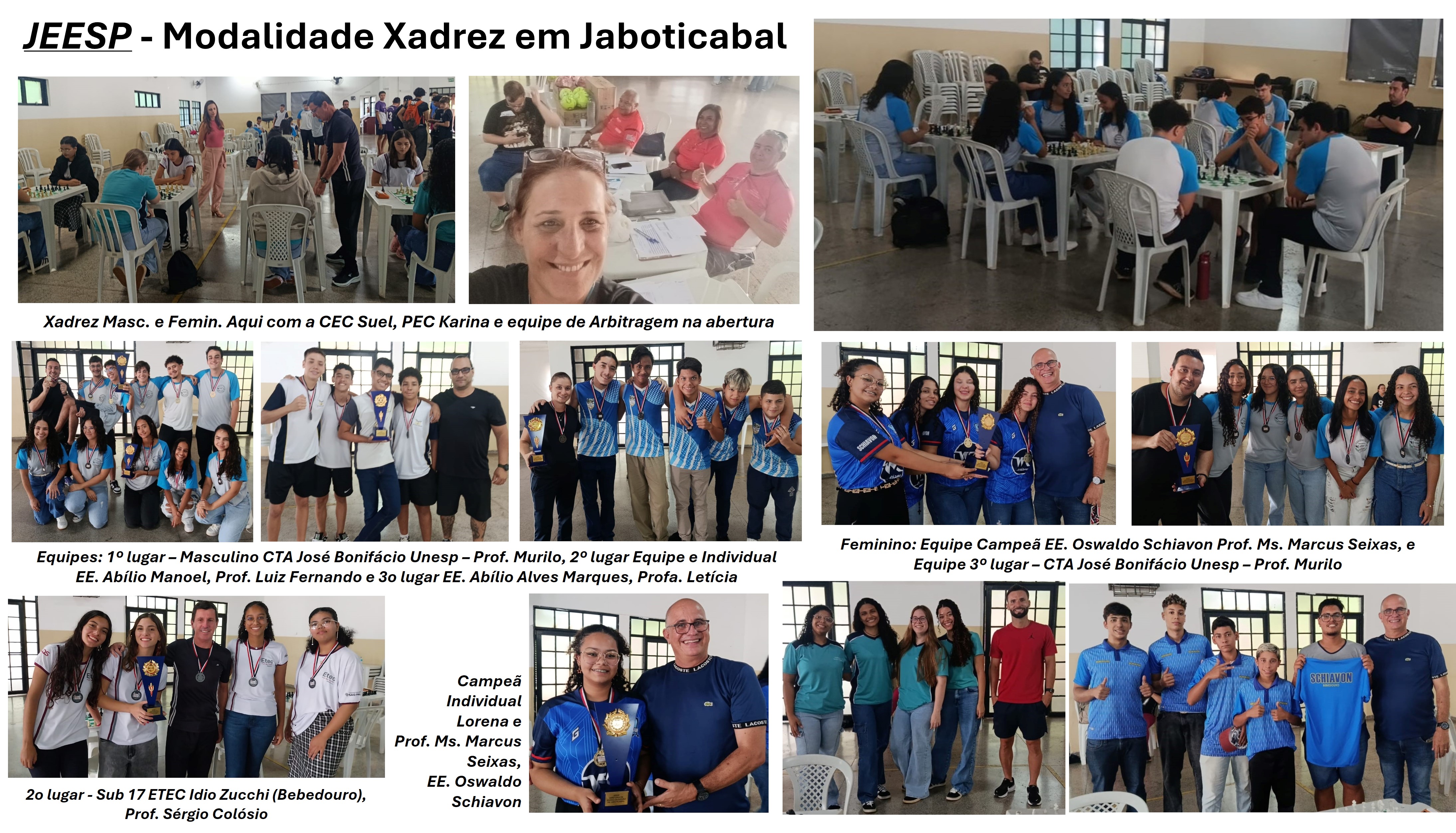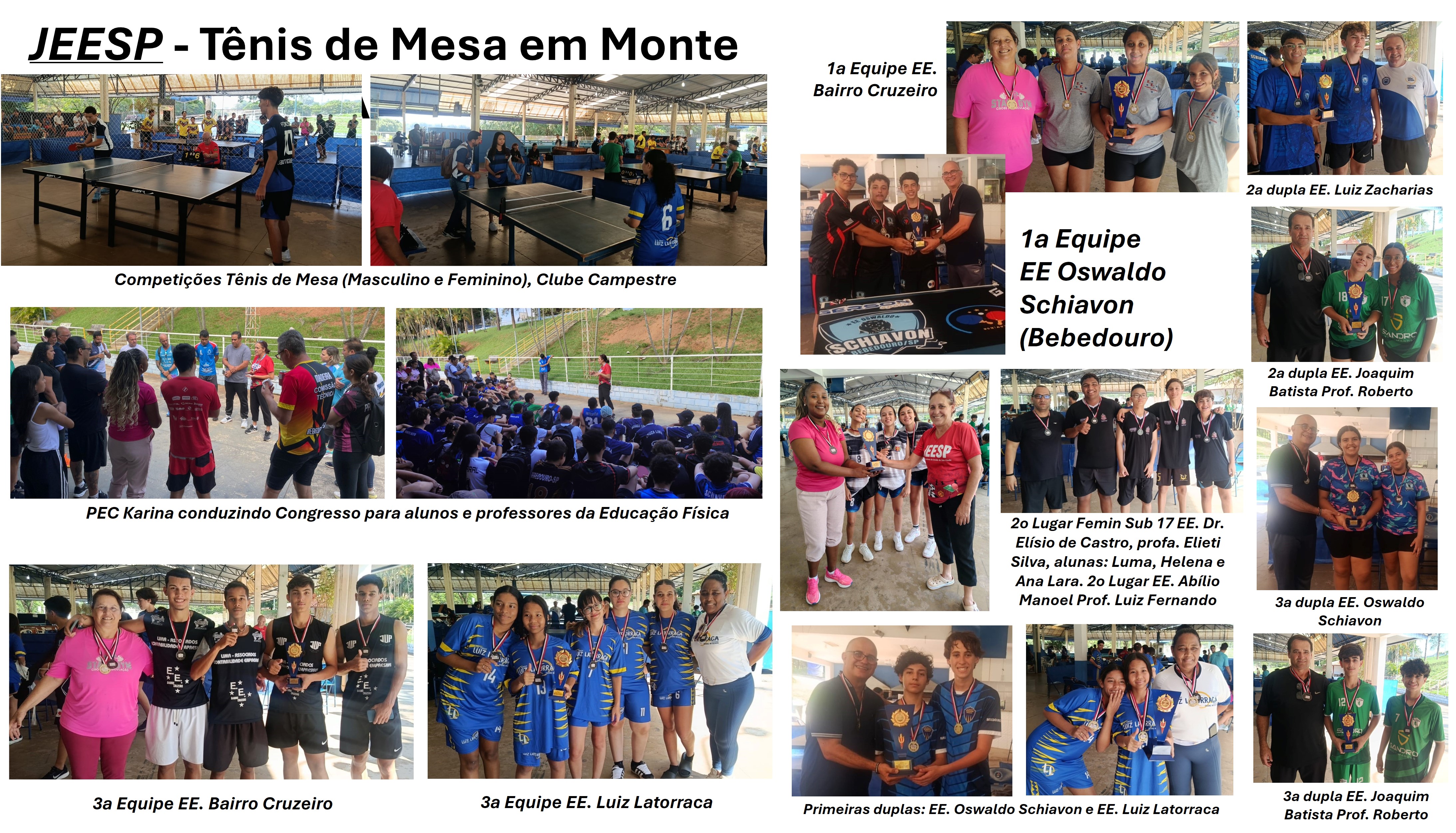 Na segunda, dia 23, as competições da Categoria Sub-17 aconteceram no Clube da Terceira Idade, em Jaboticabal, modalidade xadrez (masculino e feminino). Já na terça-feira, dia 24, em Monte Alto, os jogos da Categoria Sub-17 seguiram com o tênis de mesa (masculino e feminino), no Clube de Campo Campestre, ocasião em que a PEC Karina conduziu um importante Congresso para alunos e professores da Educação Física ali presentes.